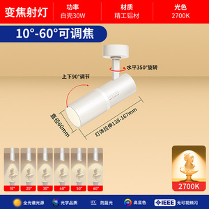 【吸顶款】7w 暖黄2700K「可调焦10°-60°」