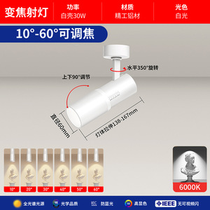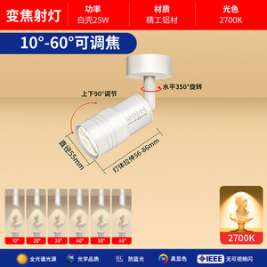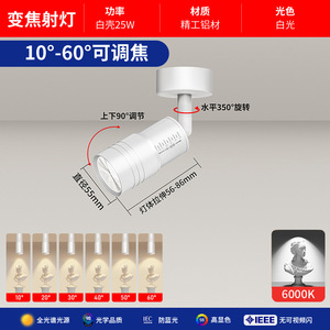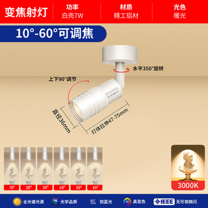 【吸顶款】7w 白光6000K「可调焦10°-60°」