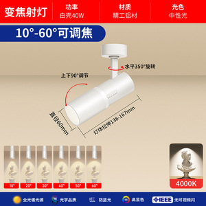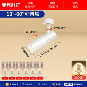 可调焦轨道射灯商用餐厅餐饮小角度一束聚光灯明装清吧变焦氛围灯
