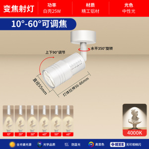 【吸顶款】7w 中性光4000K「可调焦10°-60°」