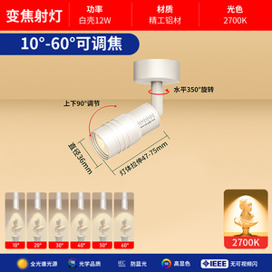 【吸顶款】12w 白光6000K「可调焦10°-60°」