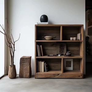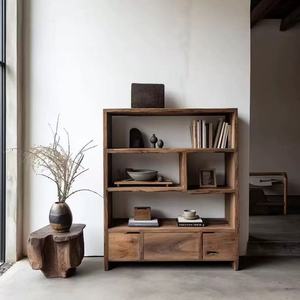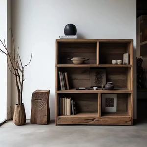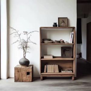 老榆木学校书籍整理架大容量满墙落地书架实木图书馆博古架展示架