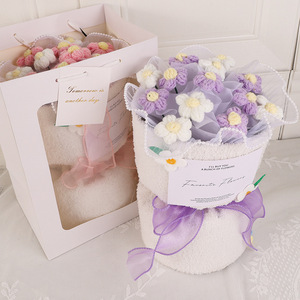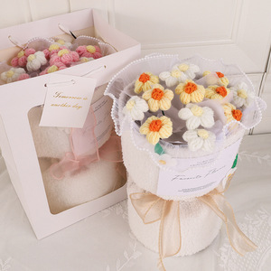 クリエイティブでかわいいウールニットブーケ、フレグランスニッチな完成花、友人、ガールフレンド、親友への誕生日プレゼントとして