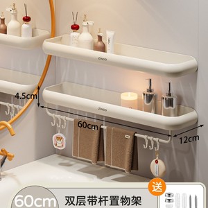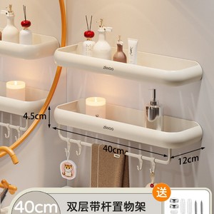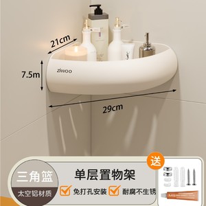 奶油风浴室置物架免打孔卫生间三角篮厕所洗漱台墙上收纳转角架子