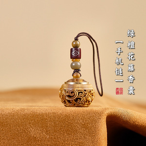 緑白檀中空携帯電話チェーンサシェボール香薬チベット香ポータブルペンダント着用古代スタイルアロマセラピーキーホルダー