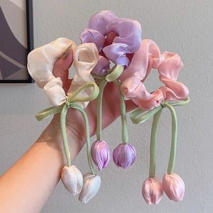 2025 新韓国甘いチューリップリボン大腸ヘアバンド女性のハイエンドヘアロープ高弾性気質ヘアアクセサリー