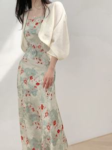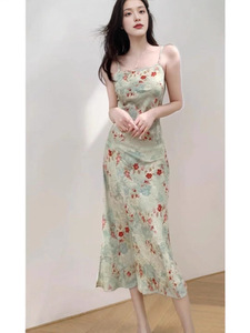ダークパターンジャカード高貴でエレガントな夏のティール中国風煙雨江南バイアスカットスリムサスペンダースカートドレス