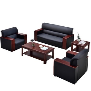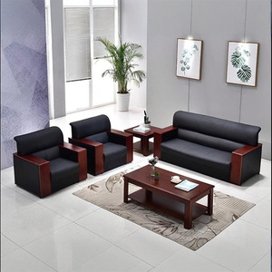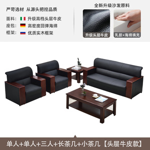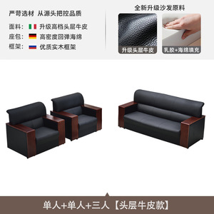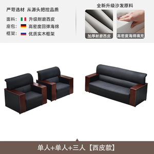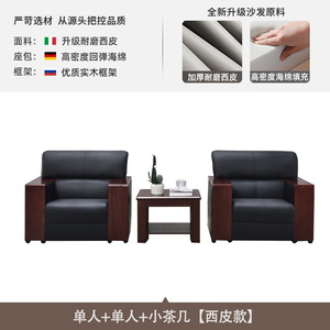 真皮办公沙发简约现代办公室沙发茶几组合商务接待会客单人三人位