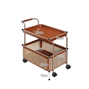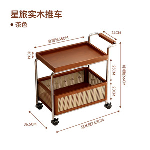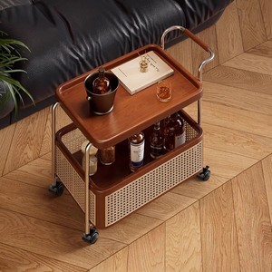 实木可移动边几收纳中古风小推车客厅沙发储物置物架藤编零食餐车