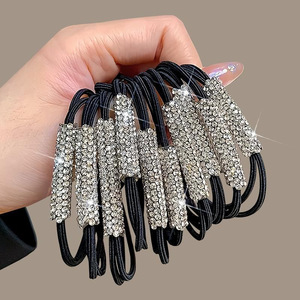 ハイエンドのラインストーンブラック気質ヘアロープ女性のハイエンドゴムバンドヘアリング高弾性と耐久性のあるヘアロープヘアアクセサリー