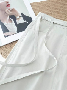 2025 新しいシンプルでファッショナブルで多用途なスカート夏薄いリボンデザインの女性のハイウエストルーズストレートスカート