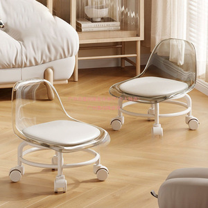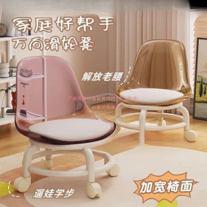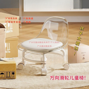 亚克力小凳子静音带万向轮儿童学步凳网红小椅子滑轮矮凳美缝凳子