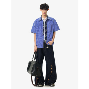 Eon Modish 25夏季新品美式街潮高街个性格纹短袖衬衫