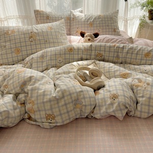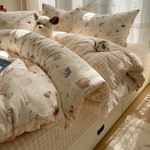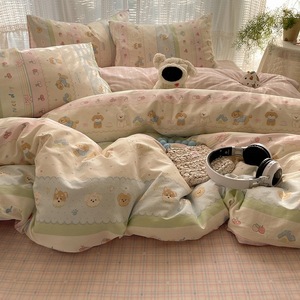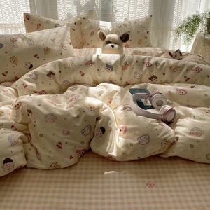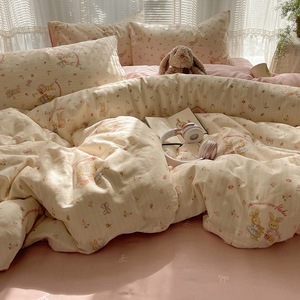 純綿ベッド4点セット 綿100 小さめフレッシュイン 花柄キルトカバー 寝具 ドミトリーベッド シングル 3点セット