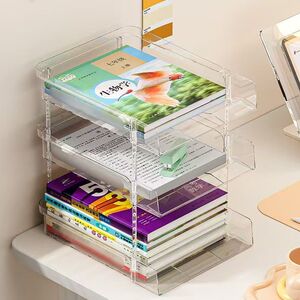 桌面文件收纳置物架亚克力透明办公室多层资料A4单据分层整理架