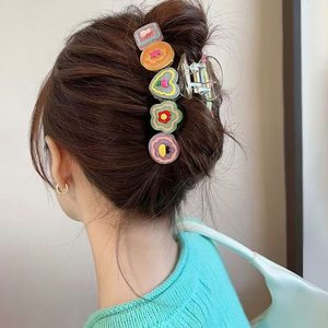 气质爱心抓夹女大号发量多新款简约发夹后脑勺鲨鱼夹卡通饼干头饰