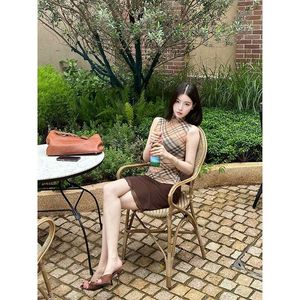法式复古格子拼接无袖吊带背心女夏季新款修身显瘦短款百搭上衣潮
