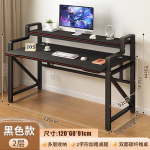 【ブラックカーボンファイバーデスクトップ】二層デスクトップ