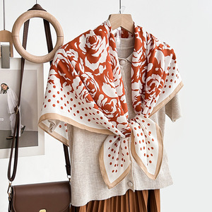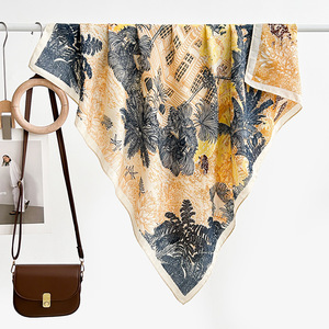ベージュカシューフラワー 90 綿とリネンの大きな正方形のスカーフ女性の夏薄い旅行日焼け止めショールスカーフ包頭スカーフ
