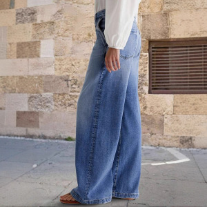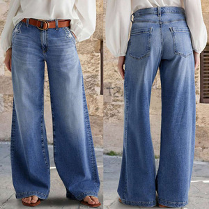 2025春季新款欧美跨境复古阔腿牛仔裤女刺绣弹力直筒裤子休闲长裤