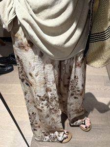 2025 新しい夏の薄い水彩プリントルーズワイドレッグカジュアルパンツ女性の休暇スタイルドレープクールパンツ