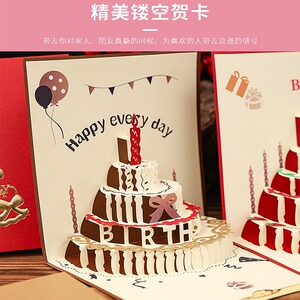 现货生日贺卡 高级感折叠3D立体生日祝福语卡片diy男生女生仪式感