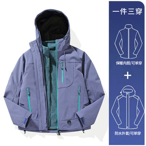 Kongshan Yuと同じスタイルの女性用ジャケット、スリーインワンハードシェル防風防水ハイキング機能ジャケット、フード付き登山ジャケット、トレンディ