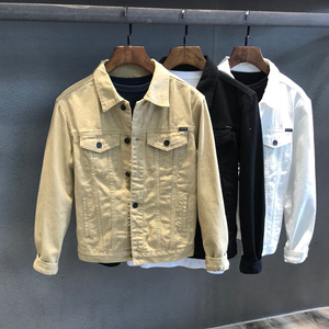 春秋季新款白色牛仔夹克男装上衣服韩版潮流休闲工装牛仔外套男士