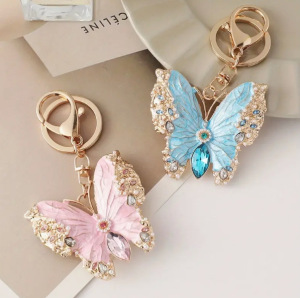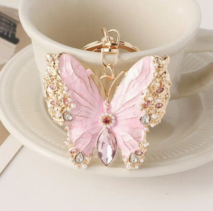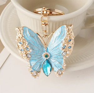 新しい釉薬蝶ペンダント女性のファッションシンプルな模造エナメル立体蝶キーホルダーラインストーンパール装飾