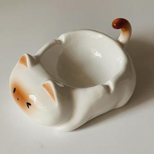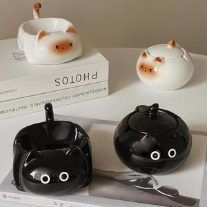 Mulanqi オリジナル シャム猫灰皿 リビングルーム オフィス デスクトップ カバー付き セラミック かわいい アート オーナメント