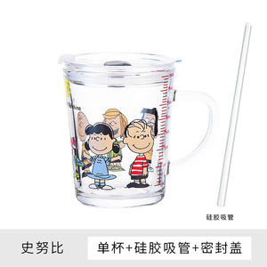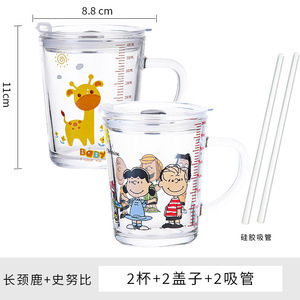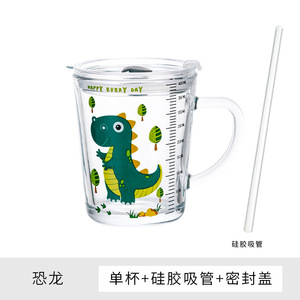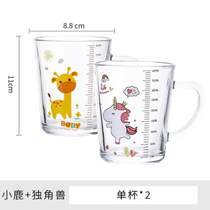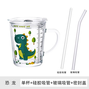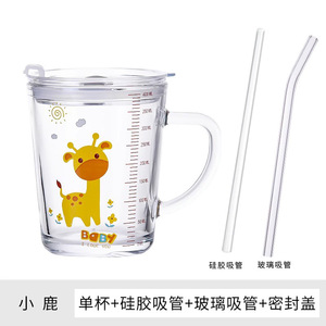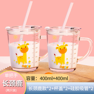 儿童牛奶杯带把刻度吸管玻璃杯微波可加热冲奶粉家用喝水驰兆