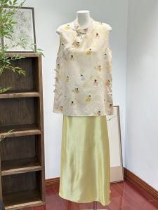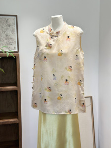 新しい中国風のハイエンド [リトルチャイニーズ] 黄色のベスト女性の夏薄いレトロジャカードバックル気質ノースリーブベスト
