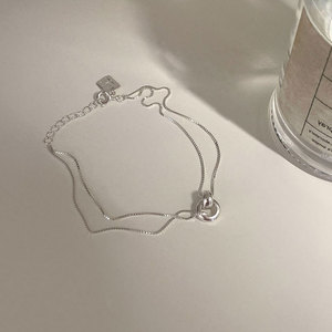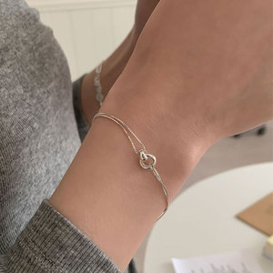 ミニマリストスタイルのリング二層シルバーブレスレット、女性用、ニッチな個性、絶妙な軽い高級感、ファッショナブルで多用途なブレスレットとブレスレット