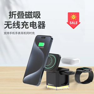 国境を越えた人気の多機能携帯電話ホルダーワイヤレス充電タッチナイトライト折りたたみ磁気スリーインワンワイヤレス充電器