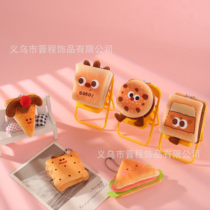 卡通毛绒少女百搭背包挂件软萌食物造型汉堡面包饼干钥匙扣小挂饰