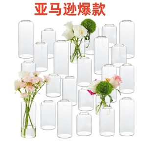 Amazonと同じ高ホウケイ酸ガラスの小口花瓶、結婚式の家の装飾花瓶、ストレートクリエイティブ手作り花瓶