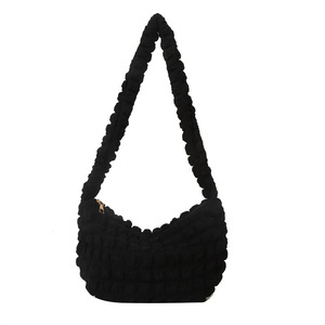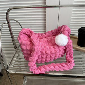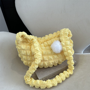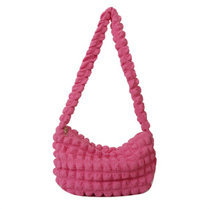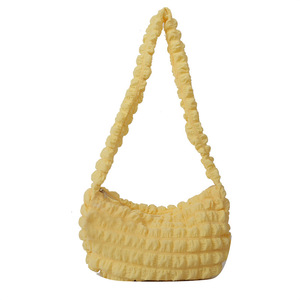 韓国風の新鮮で西洋風の無地のシンプルなショルダーバッグ女性のための 2025 初秋の新しいカジュアルバブルチェック柄バッグ