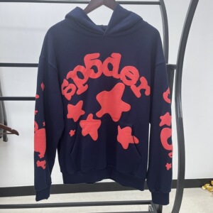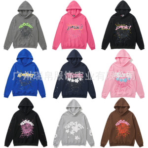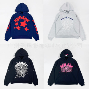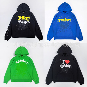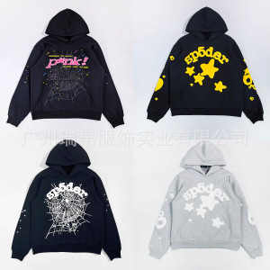 高品质原版美潮Sp5der Hoodie蜘蛛网55555发泡印花加厚卫衣连帽衫