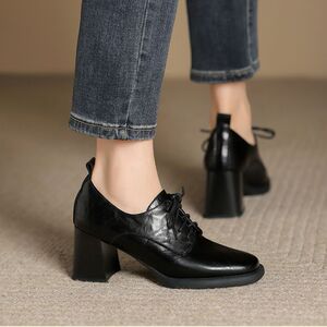 复古系带深口单鞋女2025年新款方头高跟小皮鞋法式粗跟英伦风女鞋