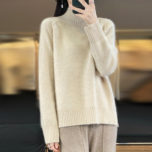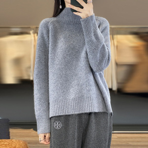 ハイカラー秋と冬の新しいラグランフラットニットボトムセーター 2025 多用途ルーズレイジースタイルトップ女性のための