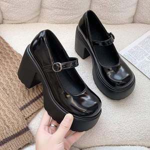 メリージェーンシューズ、婦人靴、厚底プラットフォームハイヒール、小さな革靴、英国太ヒール、ティーブレイク魔女靴、シングルシューズ、マージェーン