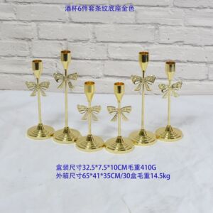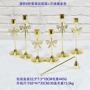 ストライプベース+ゴールドキャンドル消火器付きワイングラス6点セット