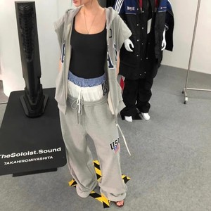 grailz fk アメリカンスタイル フェイク 3 ウエスト ドローストリング 刺繍 国旗 スプライシング カジュアル ワイドレッグ パンツ スウェットパンツ ゆったり 万能 トレンド
