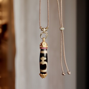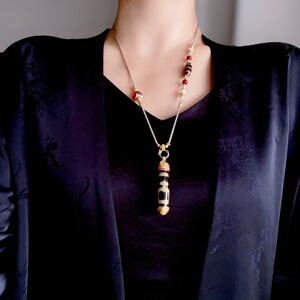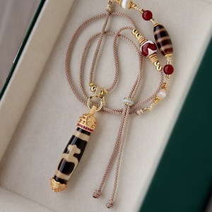 天然西藏24k古法镶嵌宝瓶天珠项链玛瑙饰品抖音文创批发源头货源
