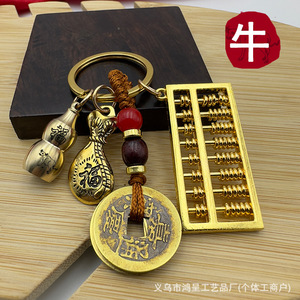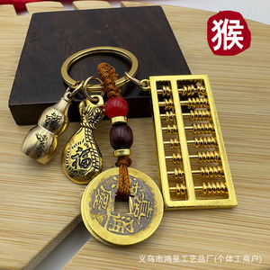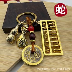 イベントそろばんキーホルダー十二支中空辰砂真鍮ひょうたんペンダント富袋五帝マネーキーホルダー