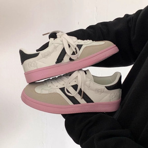 厚底小白鞋2025春夏新款板鞋女款百搭小众鞋子可爱粉色刺绣德训鞋