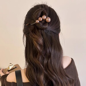 夏季百搭珍珠发夹女高级感简约扭扭夹盘发头饰后脑勺一字抓夹子