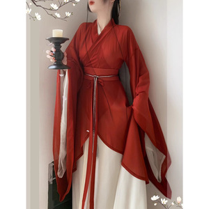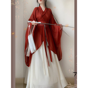 红色战国袍女南北朝魏晋风成人汉服古装2025新款交领大袖围裳破裙