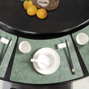 中国风复古雕花扇形皮革餐垫防烫隔热垫防水防油盘垫新中式圆桌垫