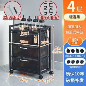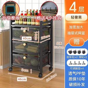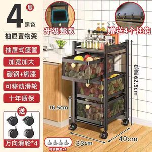キッチン引き出し型収納ラック、果物や野菜のスナックを収納できる多機能収納ラック、多層電子レンジラック、収納バスケット